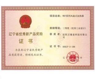 遼寧省優(yōu)秀新產(chǎn)品獎(jiǎng)勵(lì)證書(shū)